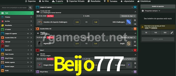 A aposta Beijo777 oferece aos jogadores a experiência mais conveniente de apostas em eSports!